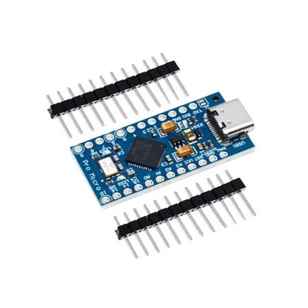 The Pro Micro is similar to the Pro Mini except with an ATmega32U4 on board. The USB transceiver inside the 32U4 allows us to add USB connectivity on-board and do away with bulky external USB interface.