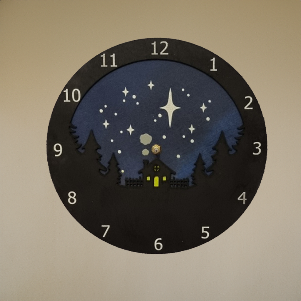 Our Christmas Silent Night Clock is perfect for adding a touch of Christmas charm to your home. Made of natural wood, the wall clock can be personalized with engravings upon request.